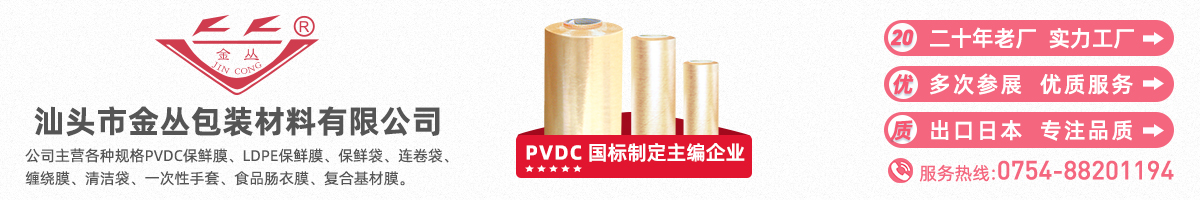 汕頭市金叢包裝材料有限公司位于廣東汕頭市金平區(qū),主營PVDC保鮮膜、LDPE保鮮膜、PVDC腸衣膜、HDPE連卷保鮮膜、HDPE背心型保鮮袋、HDPE一次性手套,混合PE無芯垃圾袋等。